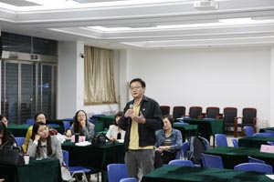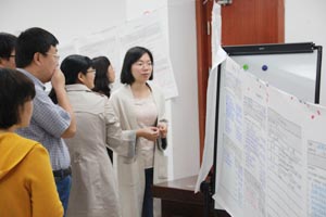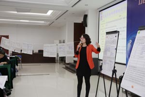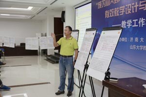 第二天上午,王秀槐教授针对大学教师面临的科研与教学压力进行了“教学与科研的整合”解读,倡导教学与科研的良性循环,重新定位本科教育以及重新审视学术。她分析了“教学启发科研”、“科研应用于教学”、“本科课程科研化”、“教学就是科研”的四种模式,使教学与科研实现相互促进。在教学过程中,教师可以找到新问题、新方法、新数据,实现教学启发科研;将本科生纳入研究生态体系,使大学生成为不断学习、研究新知社群的一份子,重新定位本科教育为探究式学习,彻底解决大学基础教育与高深教育间的矛盾;而科研就是教学,着眼于研究教学过程与成效;重新定义学术,鼓励大学教师不但对自身学科领域进行探究,也针对教学过程进行研究。最后,王教授通过工作坊方式,指导大家使用SoTL方法设计适合各自课程的教学研究规划。 下午,教师们分成了9组进行BOPPPS微格教学演练。每位教师按照BOPPPS教学模式制作了一个知识点的教学设计进行展示,之后由引导员带领全组老师对该教师的教学设计进行审视与总结反馈。王秀槐教授到各组的演练现场进行了指导。分组实作演练促进了教师之间的相互交流与学习,深化了老师们对BOPPPS教学模式的理解与运用。山东大学的部分教师在BOPPPS微格教学演练过程中担当了引导员角色。