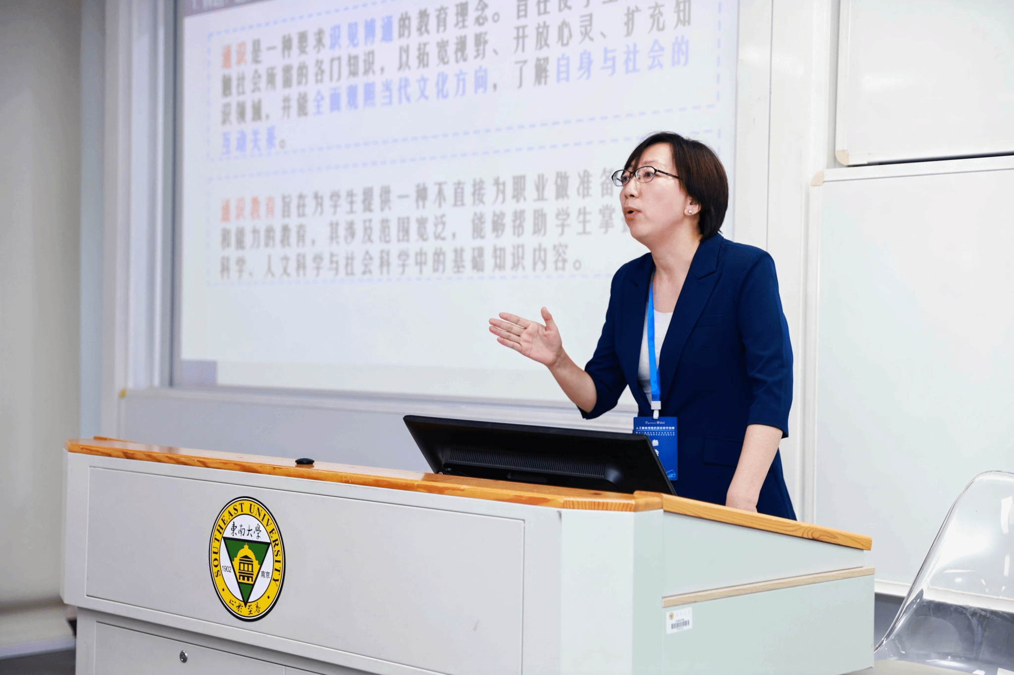 信息科学与工程学院教授范玉玲在分论坛4做题为“通智:以提升媒介信息素养为导向的‘人工智能+’大学通识课的建设与实践”的发言。范玉玲以国家一流线上课程、通识核心课程“Web前端技术”为例,分享了以提升学生媒介素养为导向,开展“人工智能+”课程重构的实践探索,通过“通智”理念和课程思政设计,以培养学生在人工智能时代所具备的数字素养、跨学科思维、社会责任感和终身学习的意识。