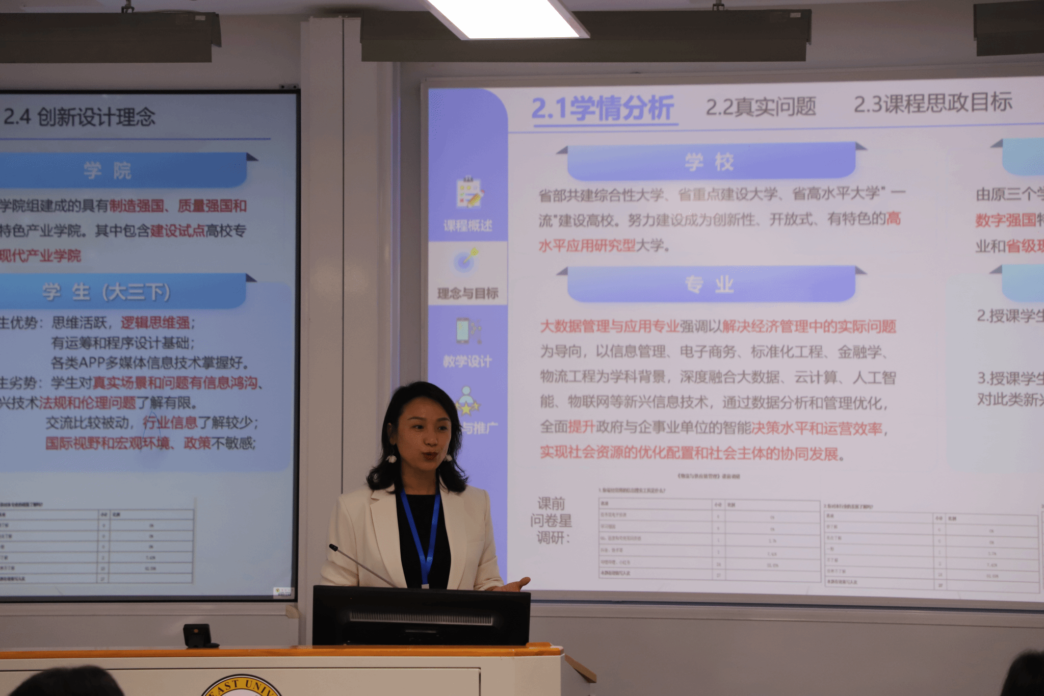 商学院副教授陈宁宁在分论坛5做题为“基于全息思维下的‘重共情 强交互’《物流与供应链管理》课程思政教学创新汇报”的发言。陈宁宁分享了新文科建设背景下《物流与供应链管理》课程教学创新的探索与实践,介绍了围绕新时期育人目标,打造全息思维下的“重共情 强交互”授课模式,形成“思政、共享、创新、数字和服务”五位一体产教融合模式的经验。 化学化工学院副教授王芳芳在分论坛8做题为“以《物理化学》为镜,共鉴Faculty教学核心素养的实践与升华”的报告。报告以《物理化学》课程为例,深入探讨了教师核心素养融入课程教学全过程的实践探索和创新研究,分享了教师通过多元教学策略,营造积极、开放、包容的学习氛围,成功激发学生的学习热情,提升学习效果的经验。