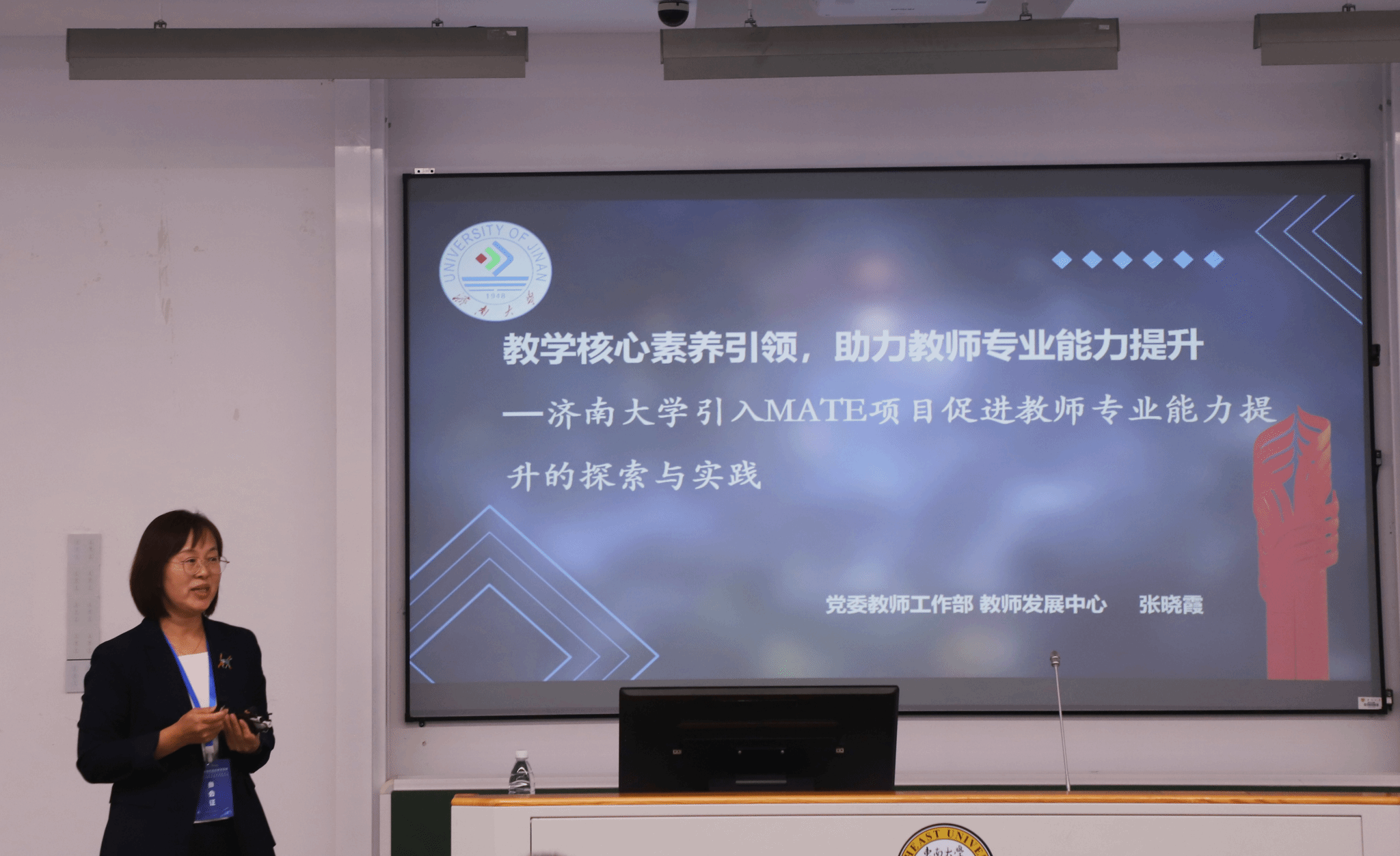 我校党委教师工作部部长 教师发展中心主任张晓霞和化学化工学院教授胡丽华在分论坛12作题为“教学核心素养引领,助力教师专业能力提升”的发言。张晓霞介绍了我校与上海交通大学教学发展中心合作,引入并成功实施“MATE多元教学有效性评估”工具,为提升我校教师教学核心素养和教学能力开辟新路径的做法经验。胡丽华结合“FACULTY”在教学改革中的实际应用与反思,分享了核心素养如何促进教师教学质量的提升,并总结实施过程中的收获与启示。
