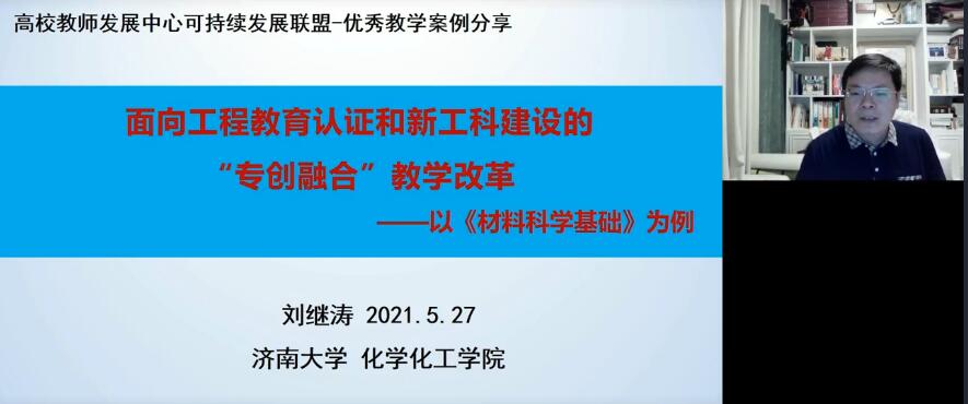 5月27日,经我校教师发展中心推荐,化学化工学院刘继涛副教授在高校教师发展中心可持续发展联盟(简称“联盟”)发起的“优秀教学创新案例分享计划”中做教学经验分享。联盟内各高校教师在CCtalk平台上收看了直播。 刘继涛副教授的分享主题是“面向工程教育认证和新工科建设的“专创融合”教学改革——以《材料科学基础》为例”,分享内容包括专创融合的内涵及重要性、面向工程教育认证和新工科建设的专创融合教学改革、专创融合教学案例、教学效果与改进等四个方面。在分享中,刘老师以我校高分子材料与工程专业的《材料科学基础》课程为例,针对传统讲授式教学过程中学生创新创业教育不足、解决复杂材料工程问题能力欠缺、理论教学与实践脱节等痛点问题,强化教学过程中学生的主体地位,将基于研究导向的项目式教学与BOPPPS教学模式有机结合,从教学目标、教学内容、教学设计、教学方法、学生评价、学习成果应用等方面探讨其教学改革,构建了新工科、工程教育认证双视域下以学生为中心、以产出为导向的专创融合教学创新模式。 高校教师发展中心可持续发展联盟,由西交利物浦大学领导与教育前沿院发起,各高校的教师发展中心或相关部门自愿参与、共同治理。联盟以开展教师发展相关的培训、论坛、比赛、评估、咨询等多种类型的项目为载体,以帮助联盟成员逐步实现自身可持续发展、最终促进学生的健康成长为核心使命,目前有82所高校加入。3044永利集团官网教师发展中心于2019年6月正式获批加入联盟并成为联盟理事单位,2020年获选担任轮值常务理事单位。 为助力教发单位引导和支持本校教师的教学改革和创新实践,联盟于2020年7月发起了“优秀教学创新案例分享计划”——《联盟好课,周四开讲》,于每周四晚八点进行教学创新案例分享。迄今为止,已举办26期联盟好课,吸引了20000余人参与讨论。 |