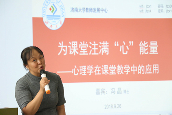 9月26日,教师发展中心邀请教育与心理科学学院冯晶博士做 “为课堂注满‘心’能量——心理学在课堂教学中的应用”的主题报告。活动在教师发展中心培训室举行。38名教师聆听了报告。活动由化学化工学院胡丽华博士主持。