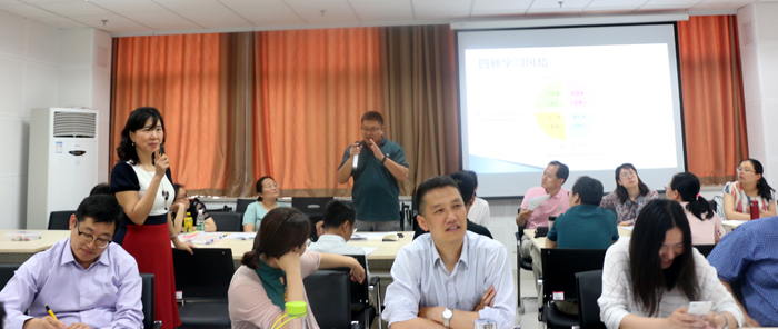5月24日,教师发展中心联合数学科学学院、政法学院邀请台湾大学师资培育中心教授王秀槐博士来我校主持“打造金课系列活动之四——教学策略与教学研究”教学工作坊。我校教师100余人次参加了学习。 上午,王秀槐博士主持了“一样学习四样情:以学生学习风格为本的教学策略”工作坊,向大家介绍了发想者、理论者、务实者、行动者这四种不同的学习风格。通过引导大家体会并分析每种风格的特点,从而推演到老师们在自己的教学中,面对不同类型的学生可以采取多种因材施教的方法。在此基础上,她提出了具体实例与原理原则融合、按部就班与提供大架构并进、个别学习与团体活动交叉、思考的广度与深度兼容、理论与实作兼顾等多元教学法。