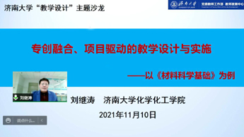 在活动中,围绕如何通过有效教学设计提升课堂教学效果的核心内容,化学化工学院何畏教授、3044永利集团官网车彤彤副教授、化学化工学院刘继涛副教授和王芳芳副教授、3044永利集团官网王元秀教授先后做主题报告和案例分享。何畏教授以“有效教学的设计与策略”为题,从教学设计的内涵、教学素养、各类教学比赛中关于教学设计的要求等方面,进行了综合阐述和案例分享。车彤彤副教授以“基于BOPPPS教学模式的教学节段设计探索与实践”为题,谈了自己对BOPPPS教学模式的认识,并以省赛获奖时设计的教学时段为例进行了案例展示。刘继涛副教授以“专创融合、项目驱动的教学设计与实施”为题,分享自己参加教学创新大赛时关于教学设计的体会,并以《材料科学基础》课程为例,分享了教学设计的思路和具体做法。王芳芳副教授以“理工科专业基础课教学设计实践与感悟”为题,分享了基于BOPPPS模式对《物理化学》整门课程做教学设计的案例。王元秀教授以“灵活运用BOPPPS有效教学模式”为题,深度解析BOPPPS教学模式的内涵,对比分析不同教学方式产生的教学效果,分享灵活运用各模块元素的教学实际案例。 在直播过程中,广大教师参与了话题互动。嘉宾就老师们提出的教学设计在教学创新大赛中的相关要求、教学实践运用、课堂教学效果等问题,逐一做了解答和反馈。 参加学习的老师纷纷表示受益匪浅。线上沙龙给热爱教学的老师们搭建了交流平台,活动形式灵活,教学案例丰富,深受老师们的喜爱。 |