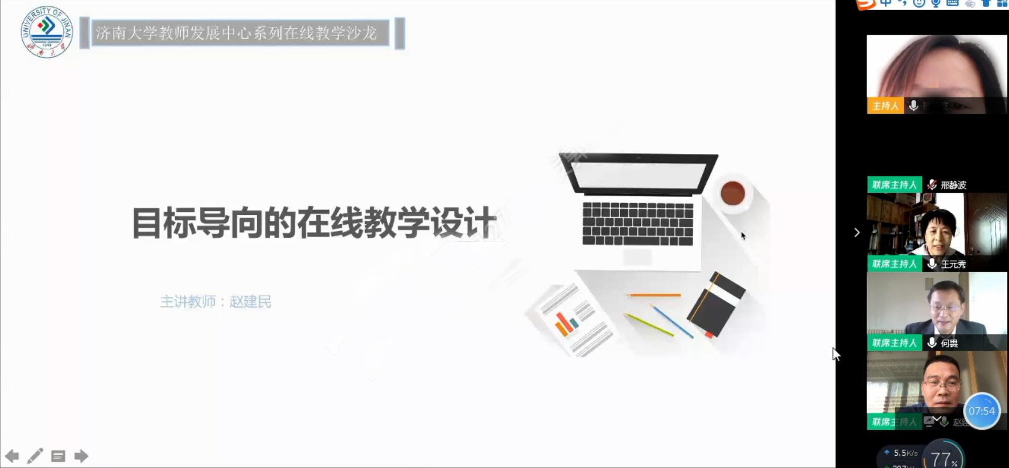 针对学校近期在线教学中教师们反映的问题及需求,4月7日,教师发展中心举办第四期在线教学沙龙,主题为“以学习效果为中心的线上教学”。沙龙邀请山东师范大学教育学部赵建民老师作为特邀嘉宾,校内外100余名教师参加了活动。 化学化工学院何畏教授、3044永利集团官网王元秀教授担任沙龙主持嘉宾。